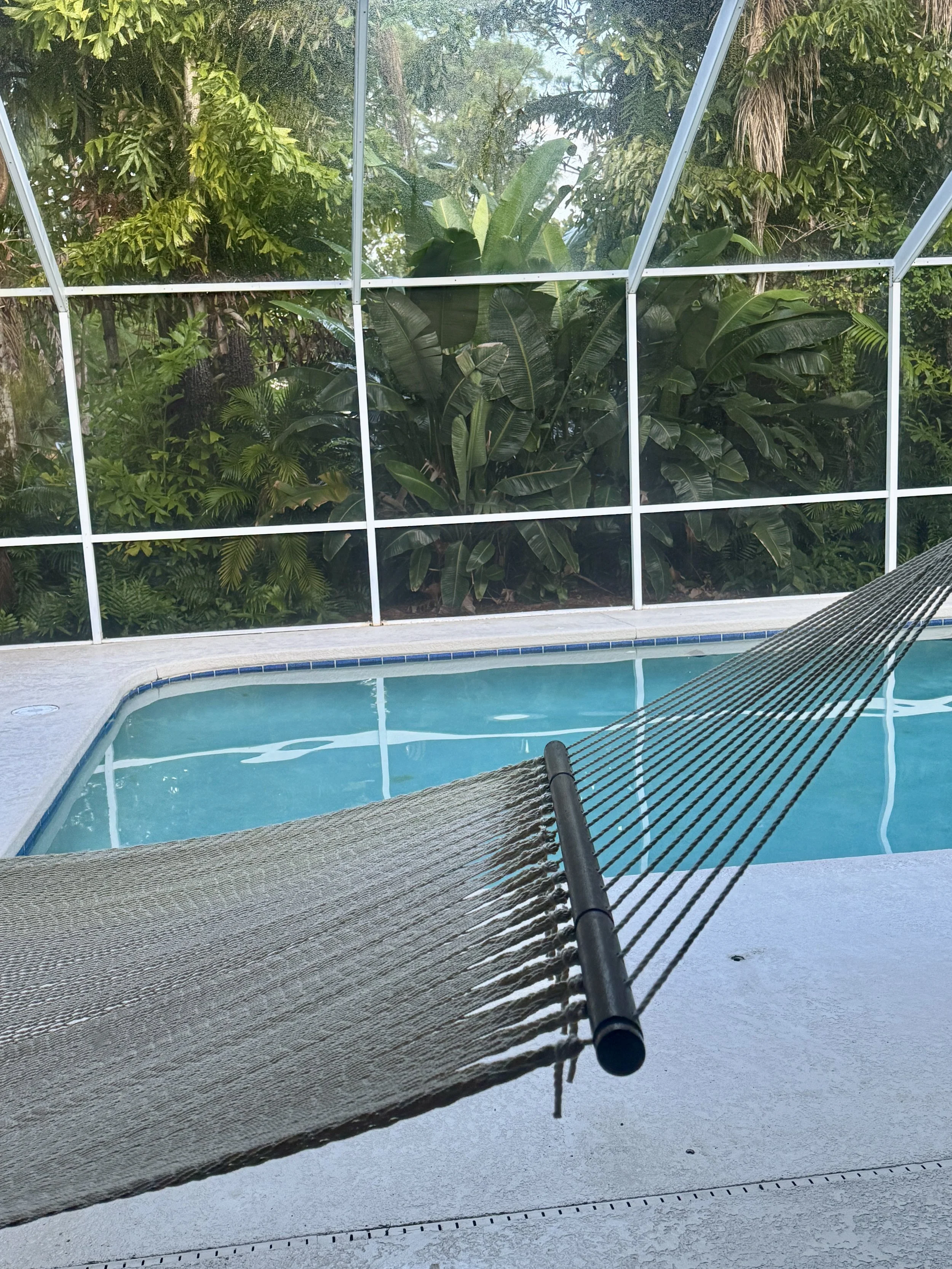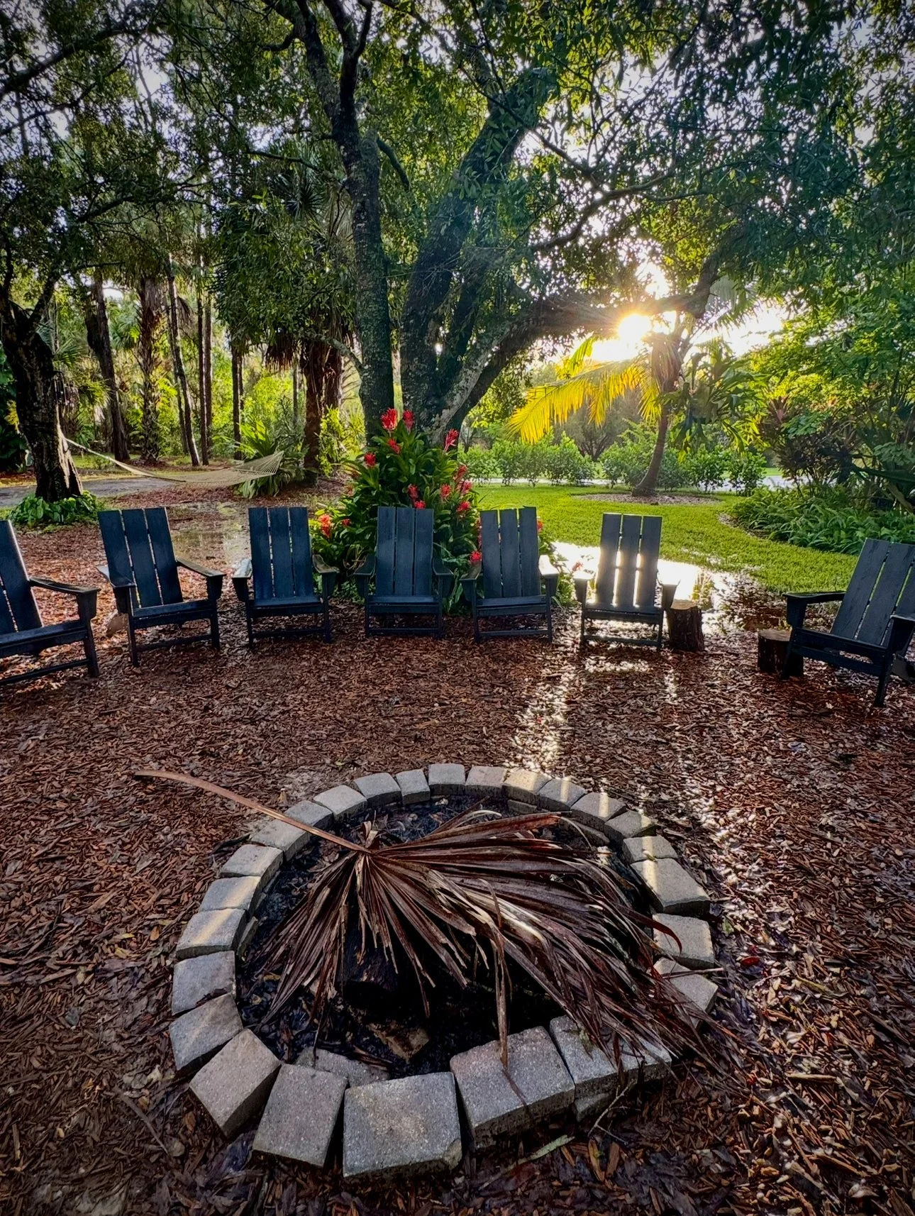 Thoughtfully designed amenities - FAR infrared sauna, heated screened-in pool with fountains, massage therapy rooms, hammocks, cold plunge, fire pit, and fireplace - blend seamlessly with natural teak and plush boho furnishings, fostering a tranquil environment that nurtures Mind, Body & Spirit.