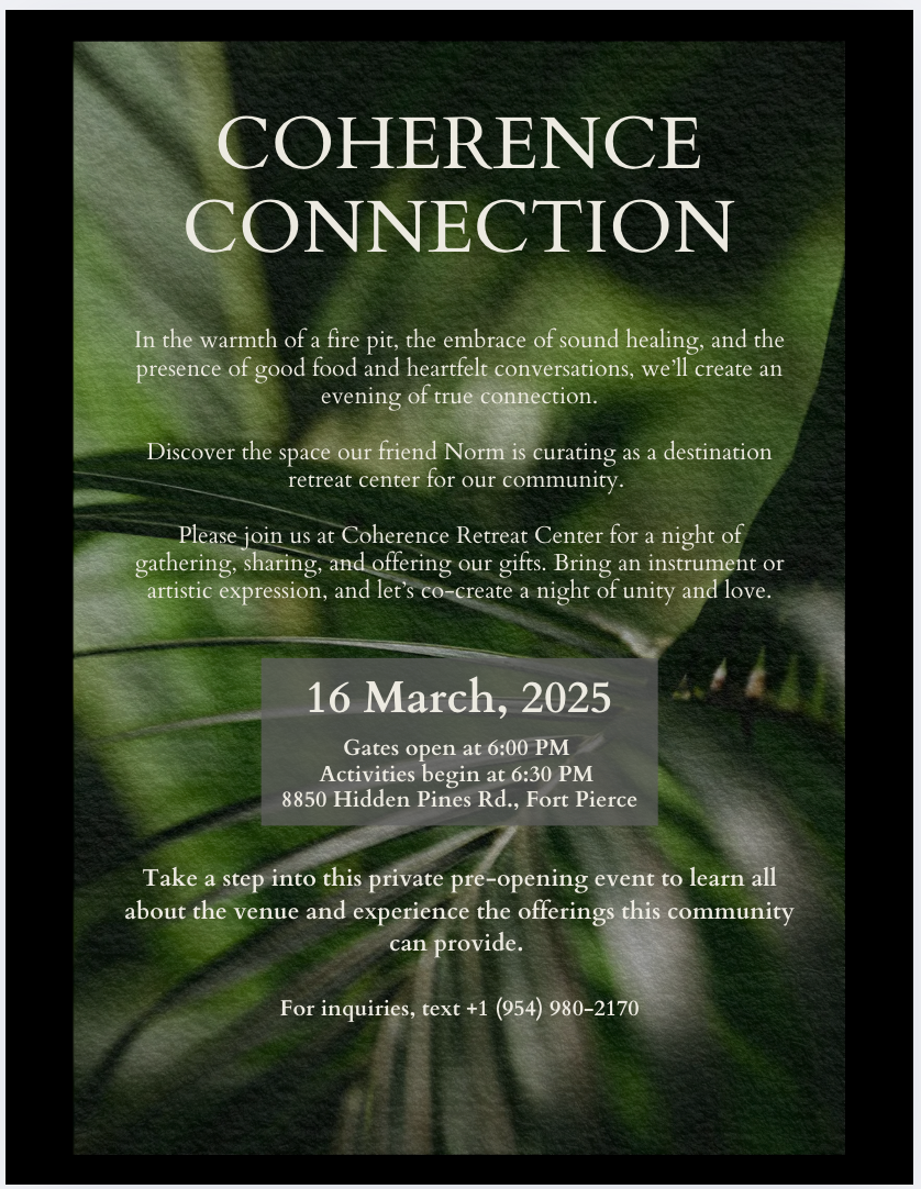 At Coherence Space, every event is more than just a gathering - it is an opportunity for transformation.